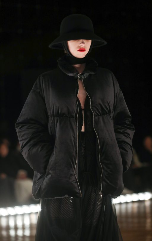 The collection also looked to the golden age of 1950s haute couture, a period defined by legendary designers like Christian Dior, Cristóbal Balenciaga, and Pierre Balmain. That influence was evident in FETICO’s structured fit-and-flare silhouettes, refined with vintage sensibilities and classical detailing. Funayama intentionally reduced FETICO’s signature skin-baring details this season, focusing instead on highlighting the body through cut, structure, and texture.