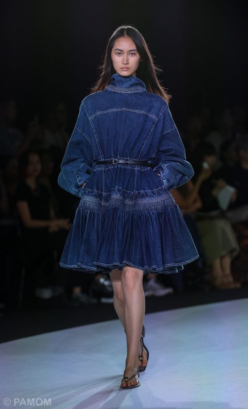 In an addition to the lighter, fluid pieces, the collection also incorporated denim — a first for the brand — showcased through a hand-smocked denim skirt created over more than twenty hours and subjected to a detailed wash process to yield a richly textured expression. This denim inclusion added a contrasting material presence to the otherwise ethereal lineup.